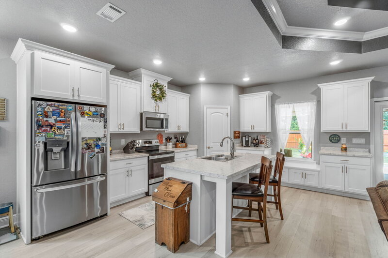 An open-concept layout and split floor plan make it great for both daily living and entertaining. The living room features a triple trey ceiling with crown molding, also found in the primary suite, and LVP flooring runs through the main areas for style and easy upkeep.
